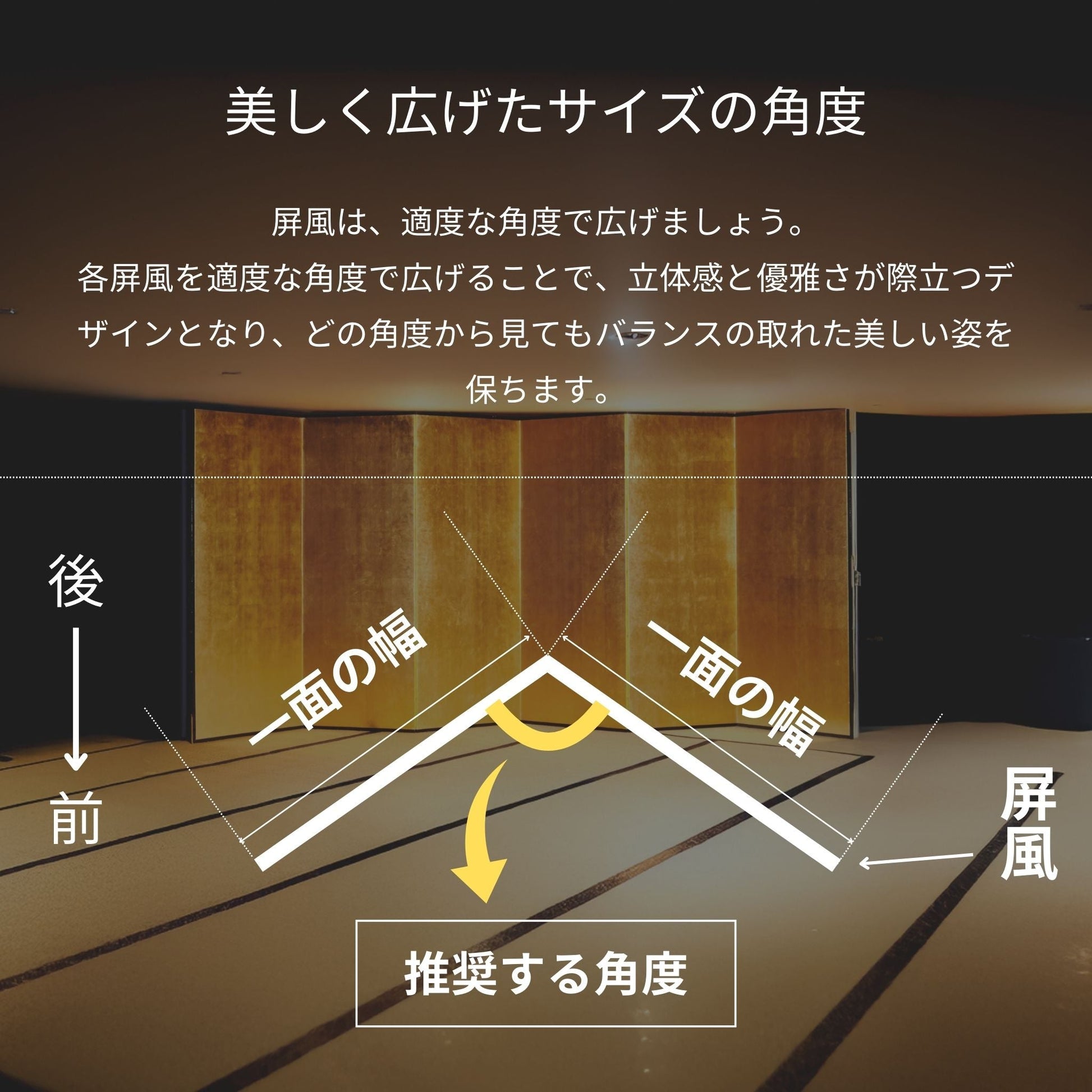 140年以上の歴史を誇る伝統工芸の技術を継承しつつ、現代のニーズに合わせて進化を遂げた「SAISHO 彩翔(軽量)タイプ」の金屏風。